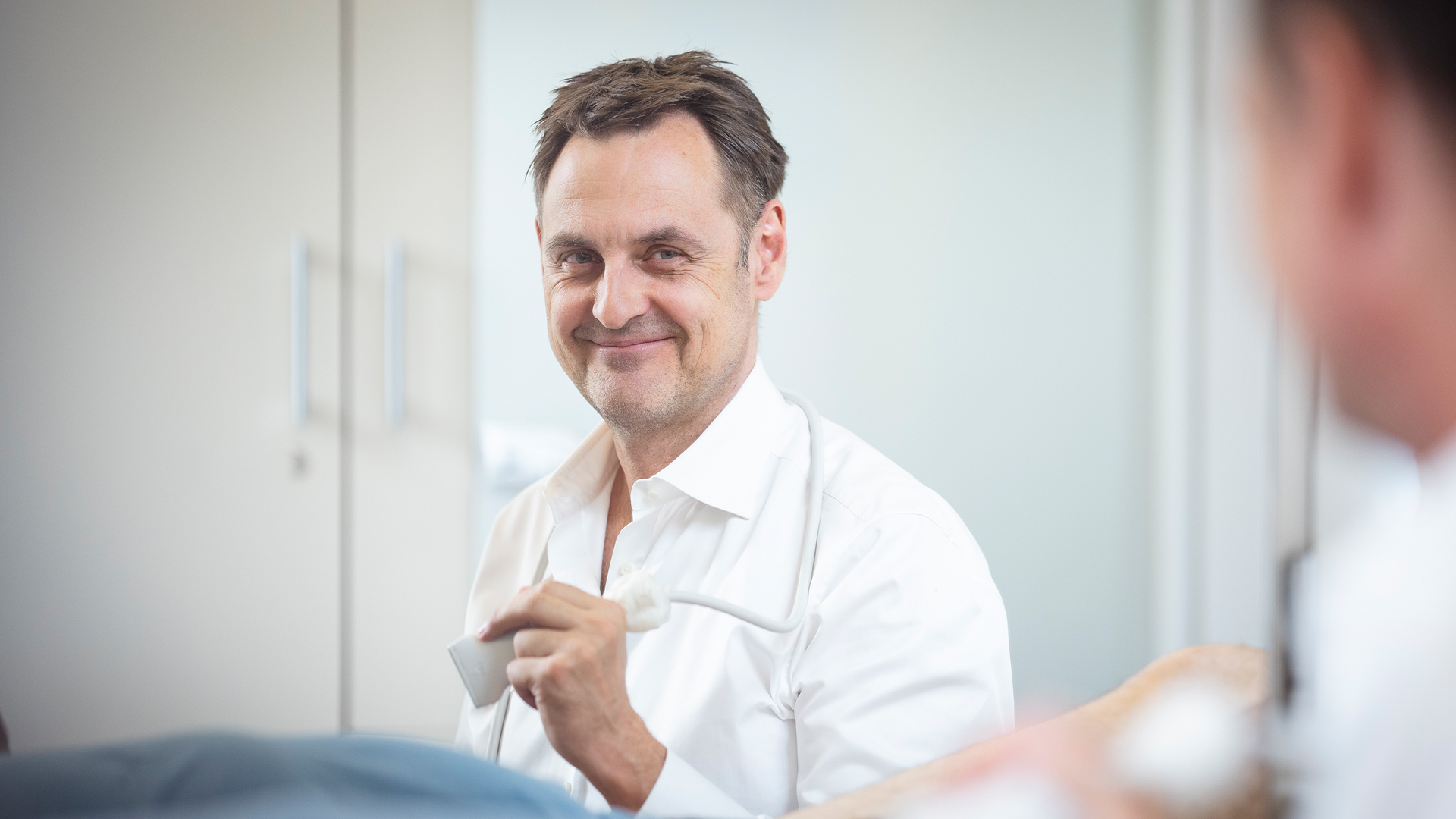 Wir führen einen dünnen ClosureFast-Katheter über einen winzigen Hautschnitt unter Ultraschallkontrolle in die erkrankte Vene ein. Der mit Radiofrequenzenergie betriebene Katheter überträgt die erzeugte Wärme auf die Venenwand. Dadurch schrumpft die Venenwand und das Gefäß wird vollständig verschlossen.